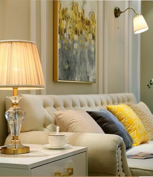 Đèn bàn pha lê hiện đại chụp vải trang trí biệt thự khách sạn căn hộ cao cấp phong cách Châu Âu DTT-YN9982