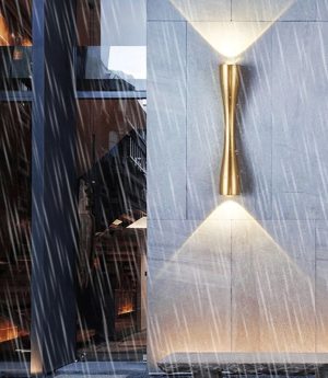 Đèn tường ngoài trời hắt sáng 2 đầu LED chống nước IP65 trang trí hiện đại 6w màu gold cao cấp DTT-GT1