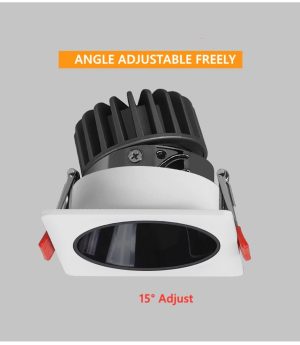 Đèn LED COB âm trần mặt vuông tán quang xoay góc lỗ khoét 90mm góc chiếu 36 độ 7w 12w 15w chip Bridgelux nguồn Done cao cấp DTT-ATCVP90