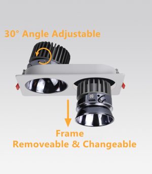 Đèn LED COB âm trần đôi mặt vuông tán quang xoay góc 30 độ lỗ khoét 80x160mm 7wx2 12wx2 chip Bridgelux nguồn Done cao cấp DTT-ATCOB80