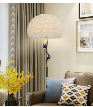 Đèn sàn phòng ngủ lông vũ cao cấp LED E27 chiếu sáng trang trí kiểu dáng Bắc Âu hiện đại H160cm DTT-DS2116
