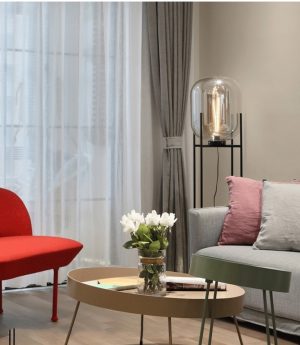 Đèn sàn phòng khách thủy tinh đứng góc hiện đại LED E27 chiếu sáng trang trí phong cách Bắc Âu H140cm cao cấp DTT-DS3554