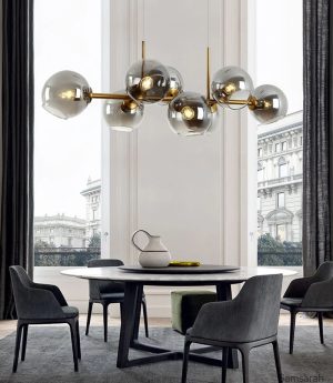 Đèn thả bàn ăn chao thủy tinh tròn bóng trắng mờ LED G9*9 trang trí bàn ăn bàn đảo bếp phong cách Nordic Bắc Âu hiện đại H150CM DTT-BA9221