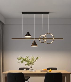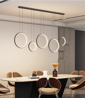 Đèn LED treo thả trần 5 vòng 6 vòng cao cấp trang trí bàn đảo bếp quầy bar phong cách Bắc Âu tối giản hiện đại H150cm điều chỉnh vỏ đen DTT-BA2240