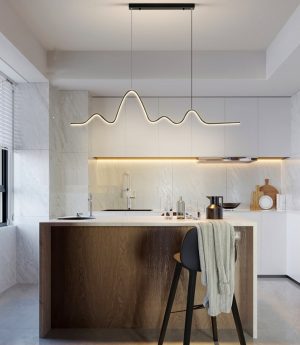 Đèn LED treo thả trần đổi màu 3 chế độ ánh sáng 30w 35w 50w cao cấp trang trí bàn ăn bàn đảo bếp quầy bar phong cách Bắc Âu tối giản hiện đại H140cm điều chỉnh vỏ đen DTT-BA7712