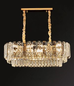 Đèn LED treo thả trần pha lê E14 cao cấp trang trí bàn đảo bếp bàn ăn phong cách Châu Âu hiện đại D80cm DTT-BA-PL8570