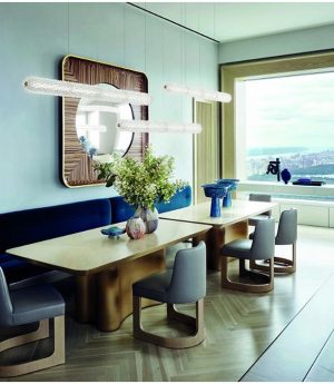 Đèn LED treo thả bàn làm việc hình ống thủy tinh cao cấp trang trí phong cách Bắc Âu tối giản hiện đại H150cm DTT-BA0811