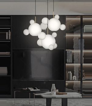 Đèn chùm treo trần thả bóng thủy tinh trắng đục D10cm D20cm LED E27 cao cấp trang trí phòng ngủ hiện đại DTT-DC078