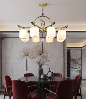 Đèn đồng treo thả trần chụp thủy tinh trang trí kiểu dáng cổ điển Trung Hoa tối giản 8 10 15 bóng LED E27 cao cấp DTT-DC66308