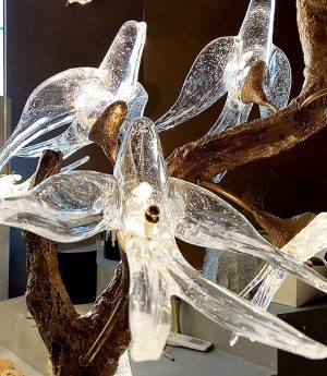 Đèn thả thủy tinh chim nghệ thuật bóng LED G4 trang trí thông tầng cầu thang khách sạn biệt thự cao cấp DTT-YE100