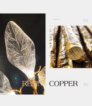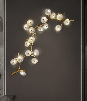 Đèn tường đồng LED G9 kiểu dáng cành lá thủy tinh trang trí tiền sảnh cầu thang khách sạn biệt thự villages phong cách Châu Âu hiện đại H150cm DTT-DT2979