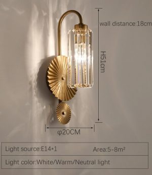Đèn tường đồng chao pha lê trang trí phòng khách phòng ngủ kiểu dáng cổ điển Châu Âu cao cấp DTT-DPL1C