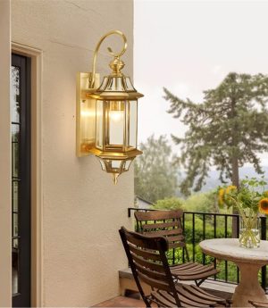 Đèn tường mạ đồng cổ điển kiểu dáng Châu Âu trang trí sân vườn hành lang ban công ngoài trời LED E27 DTT-HTL6000-B