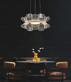 Đèn chùm treo trần LED nghệ thuật acrylic trang trí phòng khách kiểu dáng Bắc Âu tối giản nhôm cao cấp DTT-DC5002