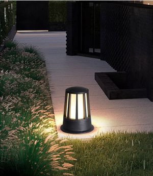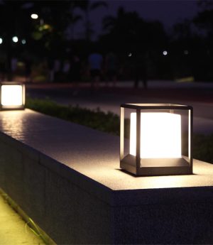 Đèn tường rào hiện đại LED E27 vỏ nhôm sơn tĩnh điện acylic chống nước ip65 chiếu sáng trang trí biệt thự villages resort cao cấp vỏ đen DTT-DT2054